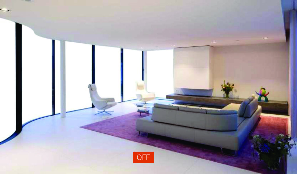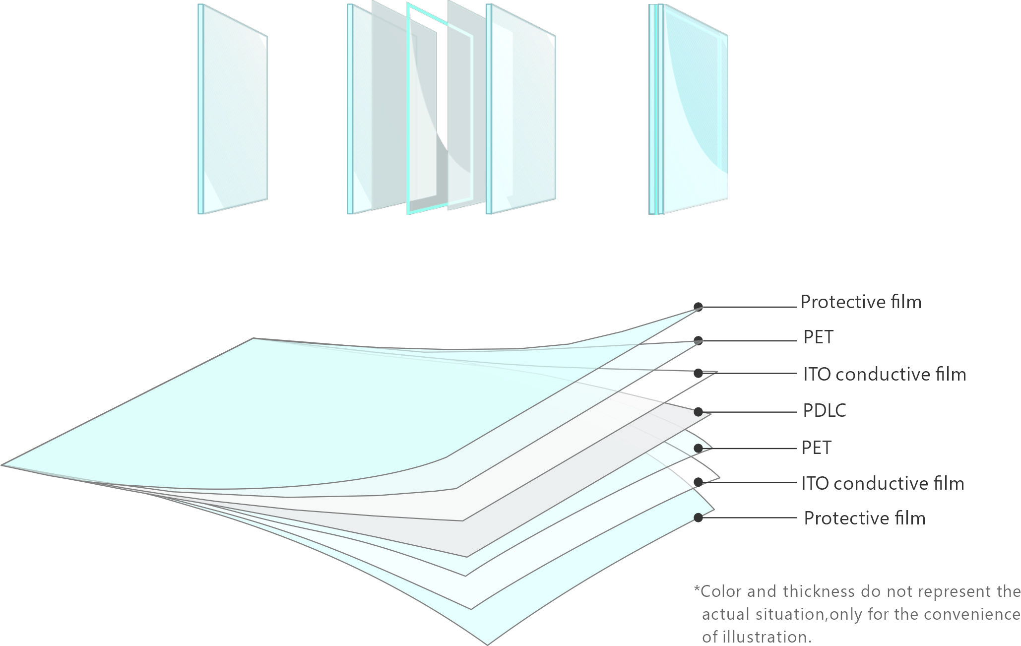 Laminated liquid crystal smart film (hereinafter referred to as smart film) is non-sticky on both sides, and can be tightly compounded with flat glass through EVA film to manufacture smart laminated glass.